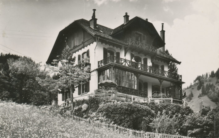 Sur cette image on aperçoit la Pension Les Mélèzes en construction (à droite)…